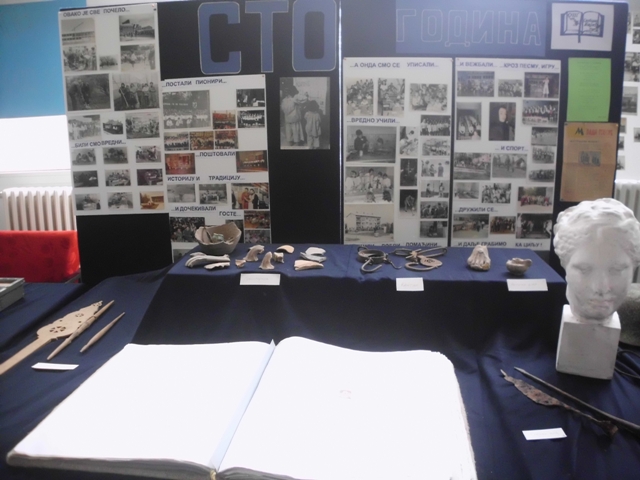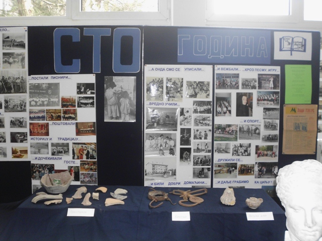 Поводом јубилеја – 100 година школе, наставници историје и српског језика са ученицима који иду на изборни предмет свакодневни живот у прошлости, су у холу школе приредили изложбу „Времеплов – школа некад и сад“, која је трајала од 28.3.2014. до 7.4.2014. године.